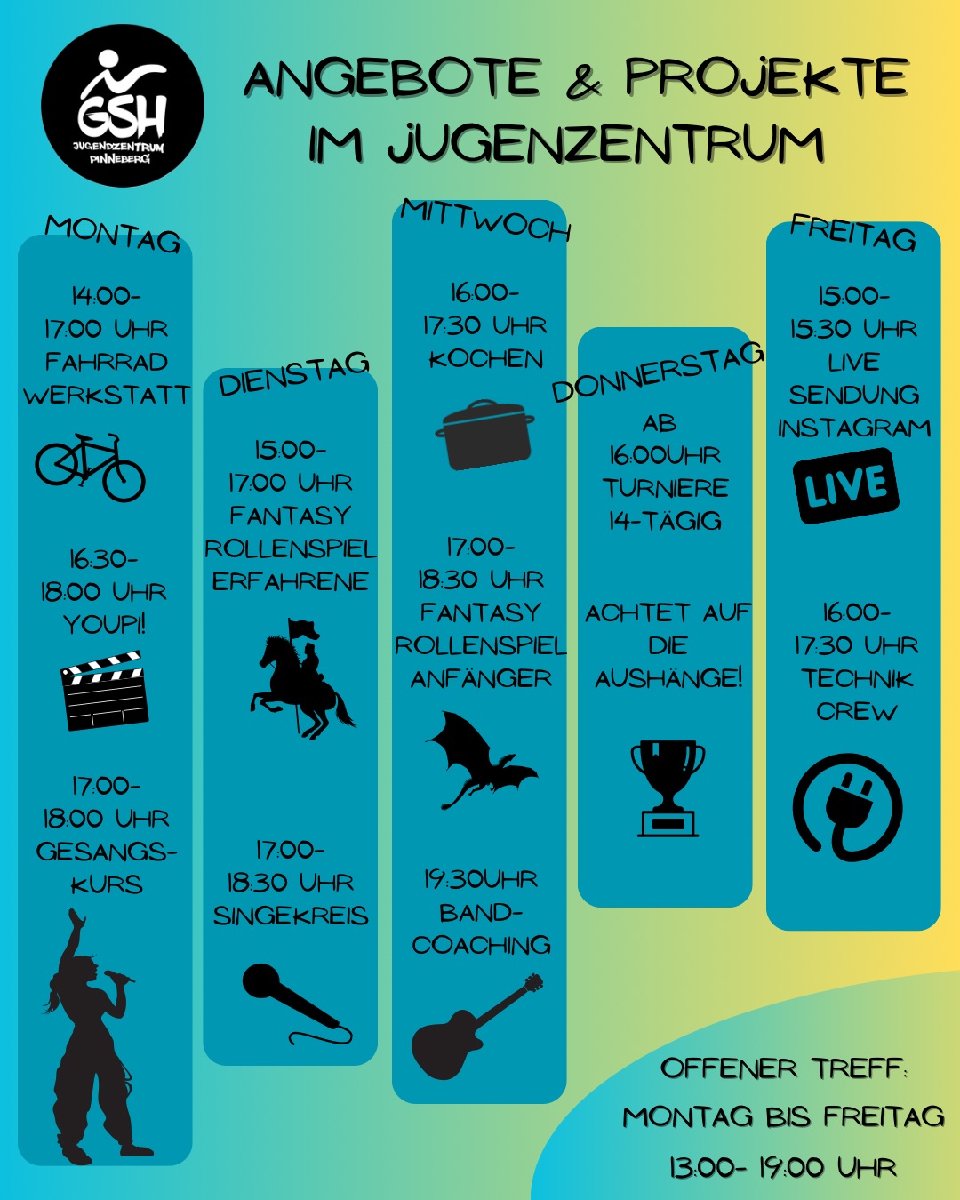 Hier siehst du, was jede Woche bei uns stattfindet.